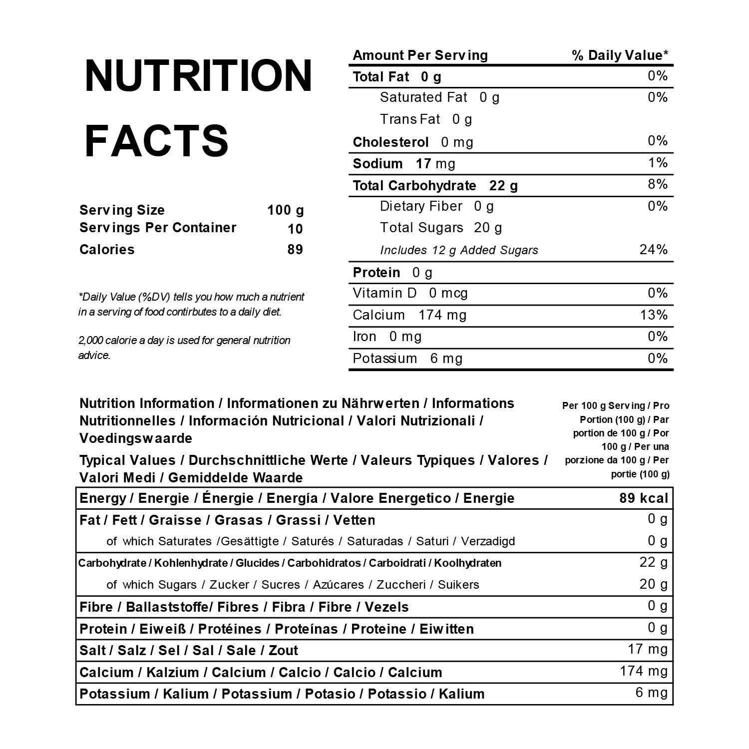Ingredients: Water, Fructose, Cherry juice, Starch, Calcium lactate (E327), Citric acid (E330), Seaweed extract, Cherry flavour, Xanthan Gum (E415), Beta-carotene (E160a), Vitamin C, Sucralose, Potassium sorbate (E202).