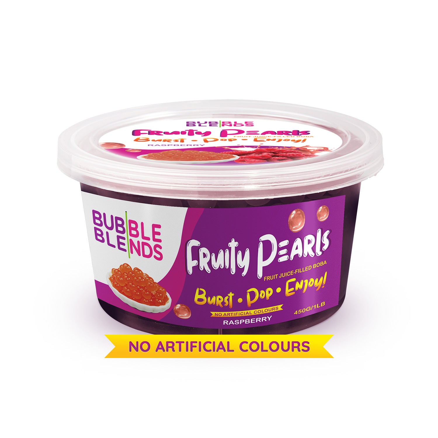 Looking for a little something extra to add to your favorite drinks and desserts? Fruity Pearls are the perfect popping boba to give your menu a boost! Made with real fruit juice and a thin seaweed coating, our Bubble Blends Fruity Pearls Raspberry flavor [indicate size] is an instant hit with customers. It's sweet, slightly tart, and fruity, great as add-ons for fruit teas, smoothies, or desserts. Ready to eat out of the tub, simply add them to any beverage or dessert for a fun and flavorful twist!